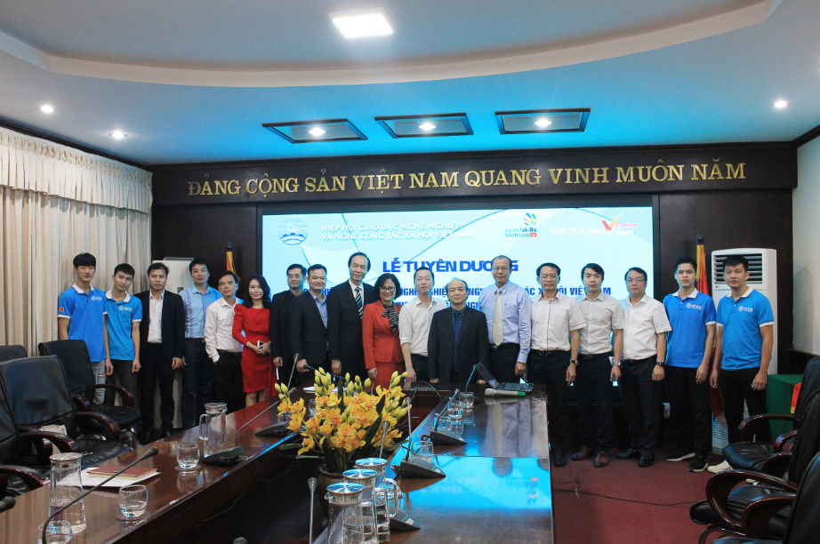 Tham dự Lễ tuyên dương có sự góp mặt của TS. Trương Anh Dũng – Tổng Cục trưởng Tổng cục GDNN; Ban Lãnh đạo Hiệp hội giáo dục nghề nghiệp và nghề công tác xã hội Việt Nam cùng Đại diện các đoàn thể, chuyên gia và thí sinh đến từ các trường.