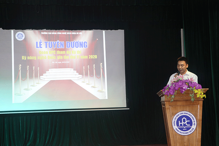 Tại Lễ tuyên dương, Thầy Nguyễn Quang Tân – Trưởng Phòng Đào tạo đã tóm lược thông tin về kỳ thi Kỹ năng nghề quốc gia lần thứ 11 năm 2020 và thành tích của đoàn HPC. Theo đó, Trường Cao đẳng Công nghệ Bách khoa Hà Nội (HPC) đã tham kỳ thi Kỹ năng nghề quốc gia lần thứ 11 – năm 2020 với vai trò là thành viên của Đoàn Hiệp hội Giáo dục nghề nghiệp và nghề Công tác xã hội Việt Nam. Năm nay, là năm đầu tiên HPC tham gia kì thi kỹ năng nghề quốc gia, với 2 nghề thi: nghề Chăm sóc Sắc đẹp; nghề Công nghệ Web, Thiết kế và phát triển trang web.