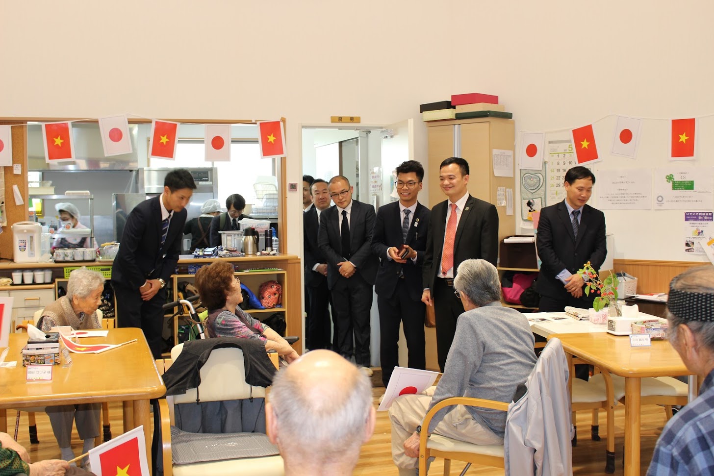Thầy Bùi Quang Thịnh – Chủ tịch HĐGD HPC (đứng thứ 2 từ phải sang) thăm viện dưỡng lão của đối tác trong chuyến công tác Nhật Bản