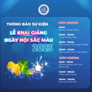 Ngày hội sắc màu HPC 2023, quy mô hoành tráng, đậm chất văn hoá cộng đồng sinh viên Trường Cao đẳng Công nghệ Bách khoa Hà Nội sẽ diễn với 4 sự kiện lớn: Lễ khai giảng 2023 – 2024, Chung kết HPC’s Got Talent, Teambuilding Lễ hội bóng nước, Đại nhạc hội HPC, hứa hẹn sẽ mang đến sự bùng nổ cảm xúc cho toàn thể sinh viên và khán giả tham gia.