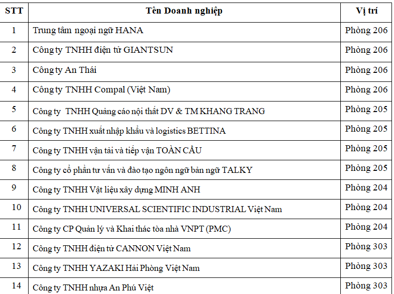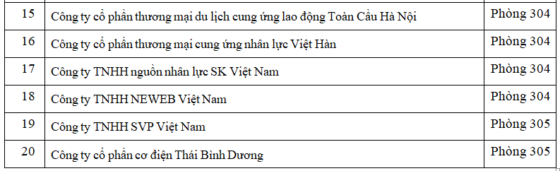 3. Địa điểm phòng dành cho doanh nghiệp: Xin bấm vào đây!