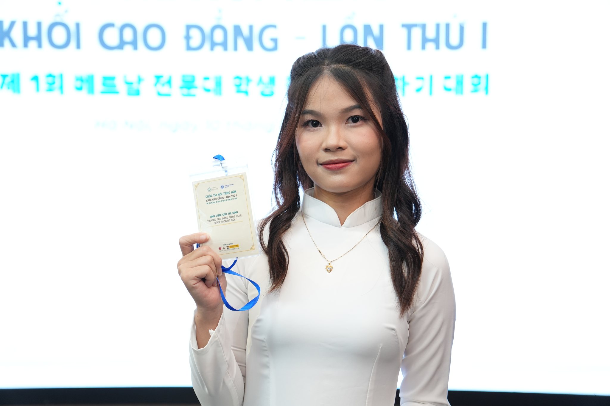 Thí sinh Cao Thị Xinh chia sẻ: “Từ lâu, em đã tham gia rất nhiều những cuộc thi cấp trường. Mặc dù sắp tới có kỳ thi tốt nghiệp và vừa trải qua kỳ học quân sự nhưng em vẫn quyết định thử thách bản thân, bằng cách đăng ký thi cuộc thi nói tiếng Hàn – Khối Cao đẳng lần 1″.