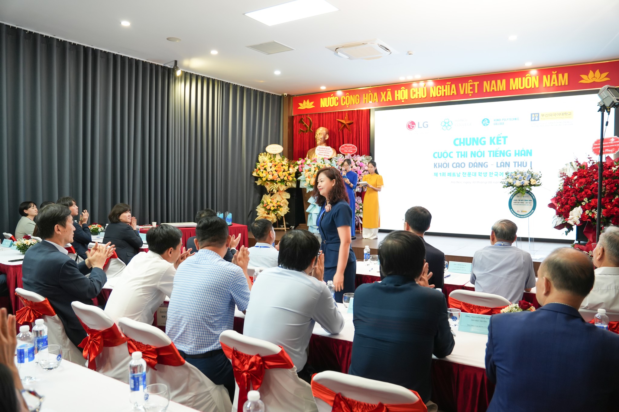 Thông qua cuộc thi, cô cũng gửi lời cảm ơn tới các ban ngành, đoàn thể; các đơn vị tham gia cuộc thi; Ban Giám khảo cùng các thầy cô giáo là cán bộ, giảng viên tham gia tổ chức Cuộc thi nói tiếng Hàn khối Cao đẳng lần thứ nhất.