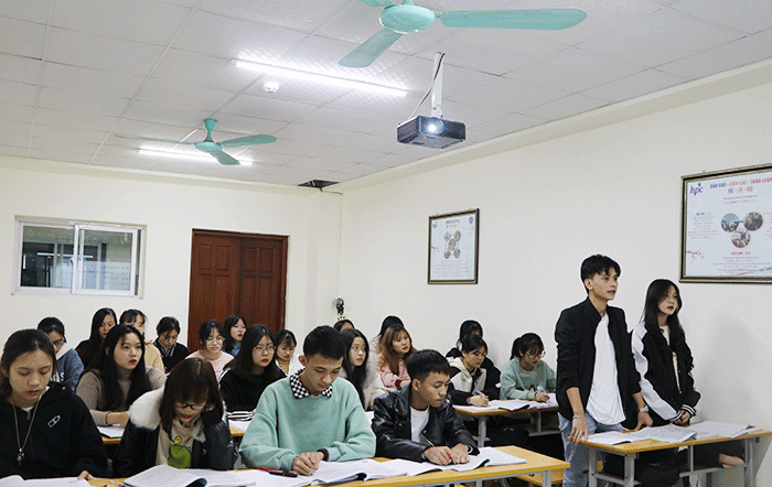 + Động từ làn trạng ngữ (phía sau sẽ có trợ từ “地”): 學生們認真地聽老師講課 – Các học sinh chăm chú nghe thầy giáo giảng bài.