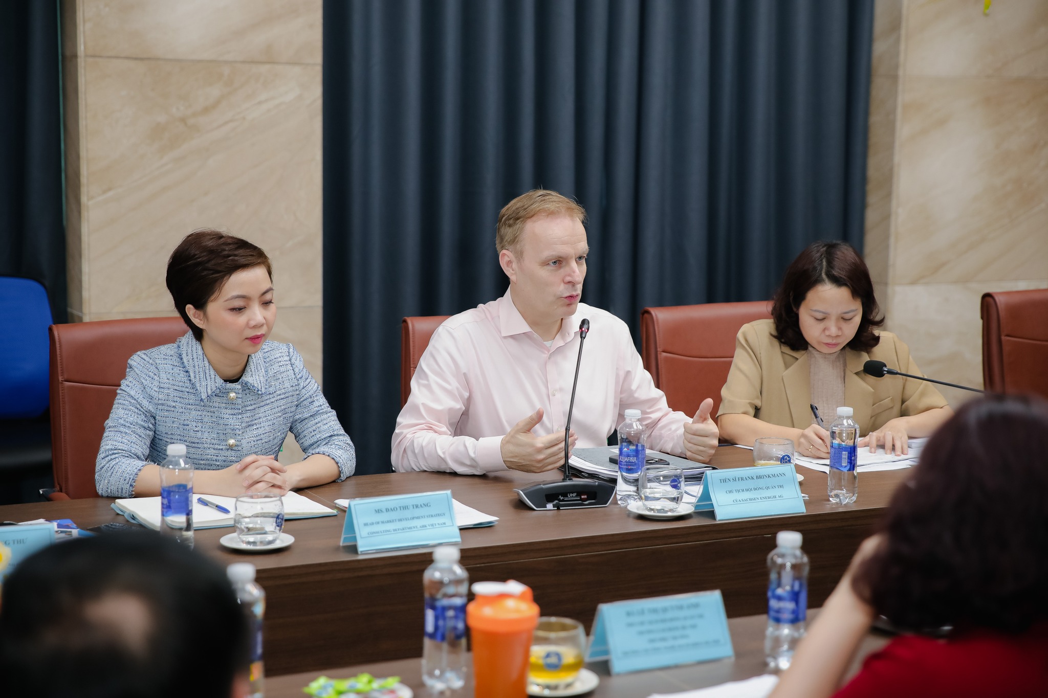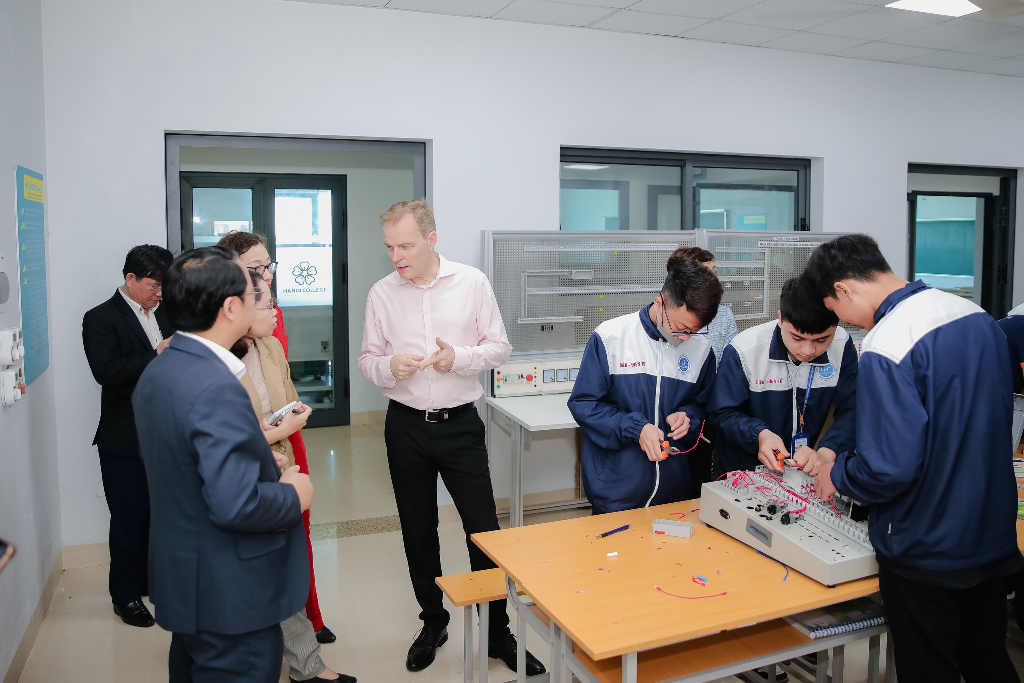 Tham gia buổi làm việc có thầy Bùi Quang Thịnh – Chủ tịch Hội đồng trường, bà Đào Thu Trang, Trưởng bộ phận Tư vấn chiến lược Phát triển thị trường của Phòng Thương mại công nghiệp Đức tại Việt Nam và Tiến sĩ Frank Beinkman, Chủ tịch Hội đồng quản trị Công ty Sachsen Energie AG và các thầy cô trong ban giám hiệu Trường Cao đẳng Công nghệ Bách khoa Hà Nội (HPC) và Trường Cao đẳng Hà Nội (HPC).