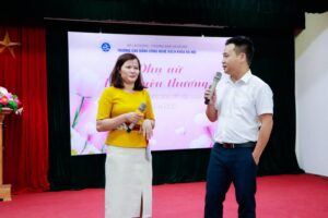 Ban giám hiệu Nhà trường gửi đến chị em phụ nữ những bó hoa tươi thắm cùng những tiết mục văn nghệ đặc sắc, chuyển tải thông điệp “Phụ nữ là để yêu thương”.