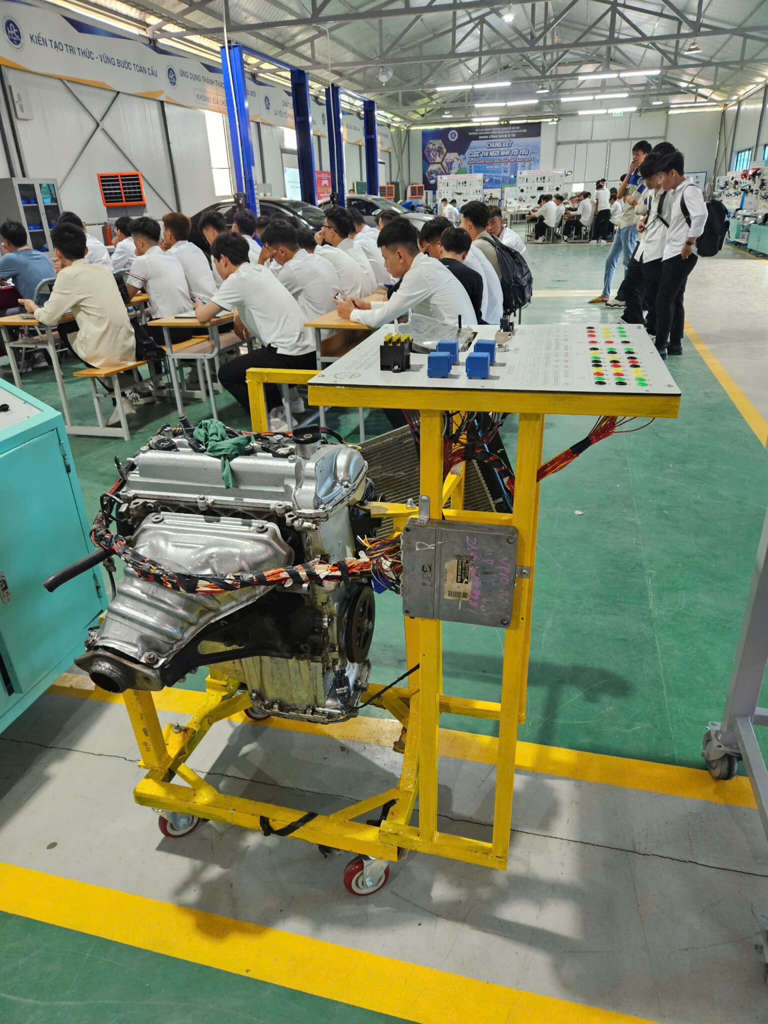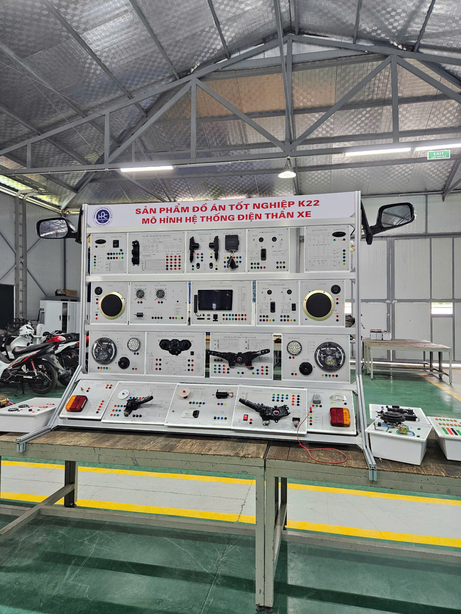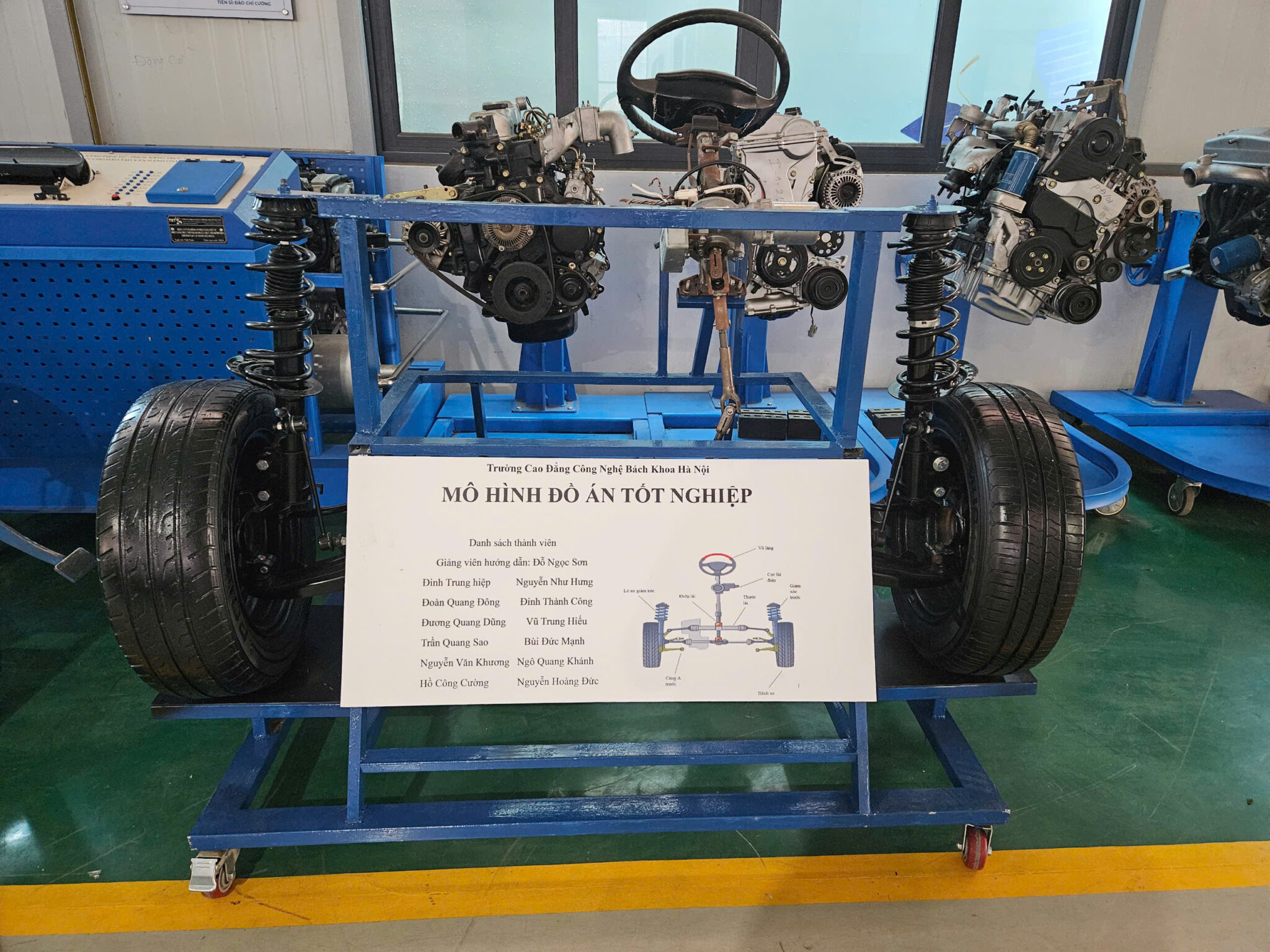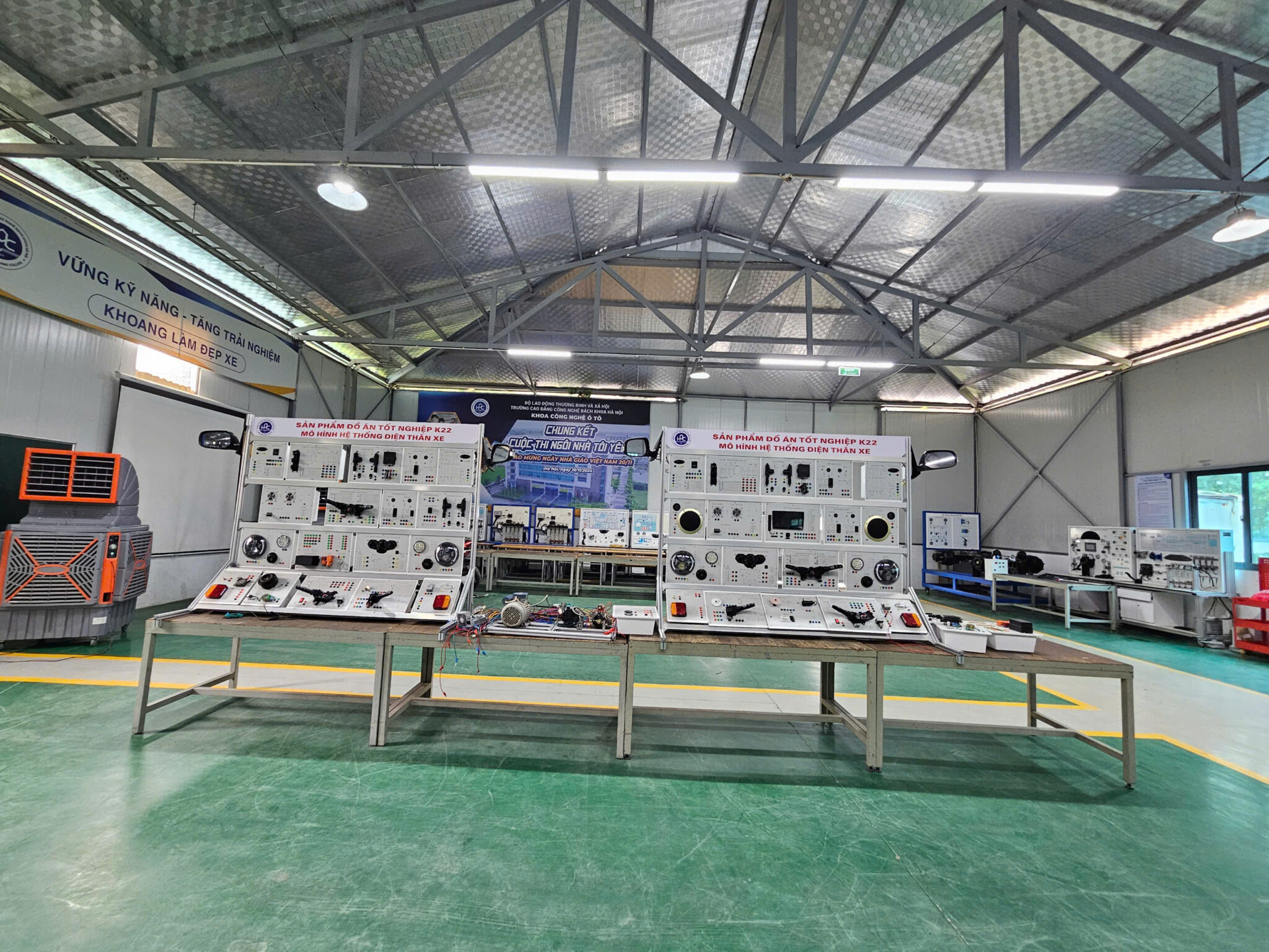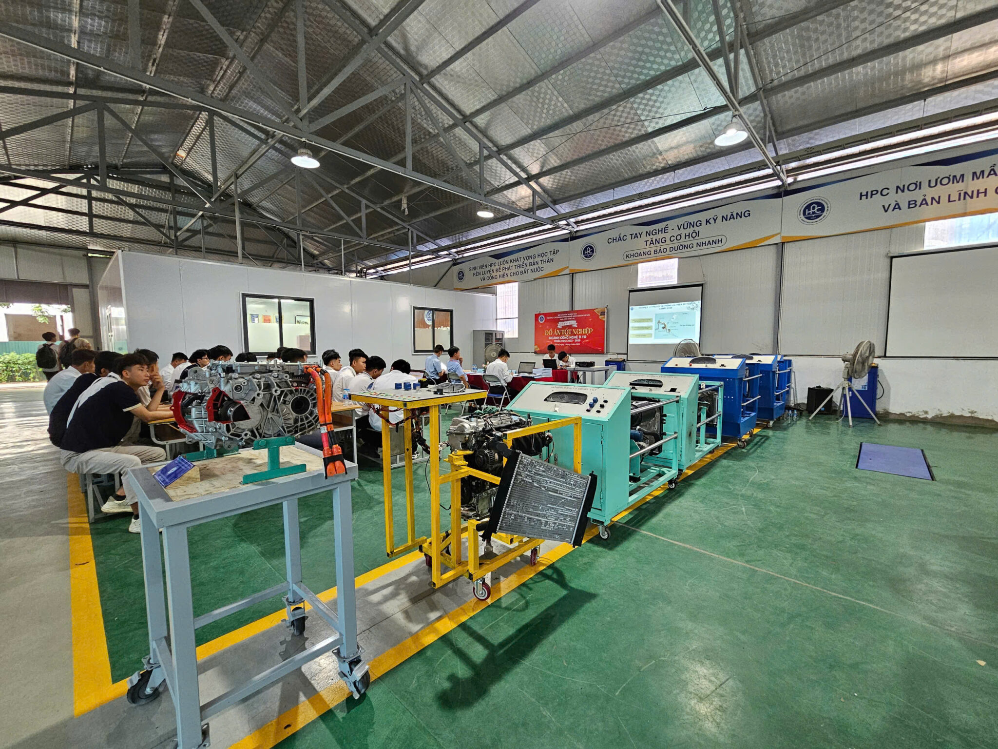 Ngay từ năm thứ hai, sinh viên đã được tiếp cận với hệ thống phòng thực hành hiện đại, tham gia thực tập tại các garage, đại lý bảo dưỡng – sửa chữa lớn, trung tâm dịch vụ của các hãng xe như Toyota, Honda, Ford, Hyundai… Chính nền tảng vững chắc này đã tạo điều kiện cho sinh viên phát triển các sản phẩm tốt nghiệp 2025 mang tính ứng dụng cao, phản ánh thực tế hoạt động sản xuất – sửa chữa – vận hành xe ô tô trong đời sống.
