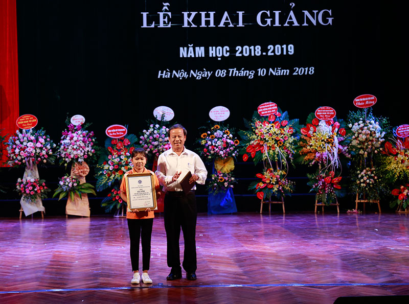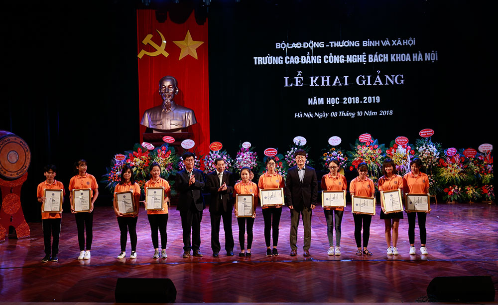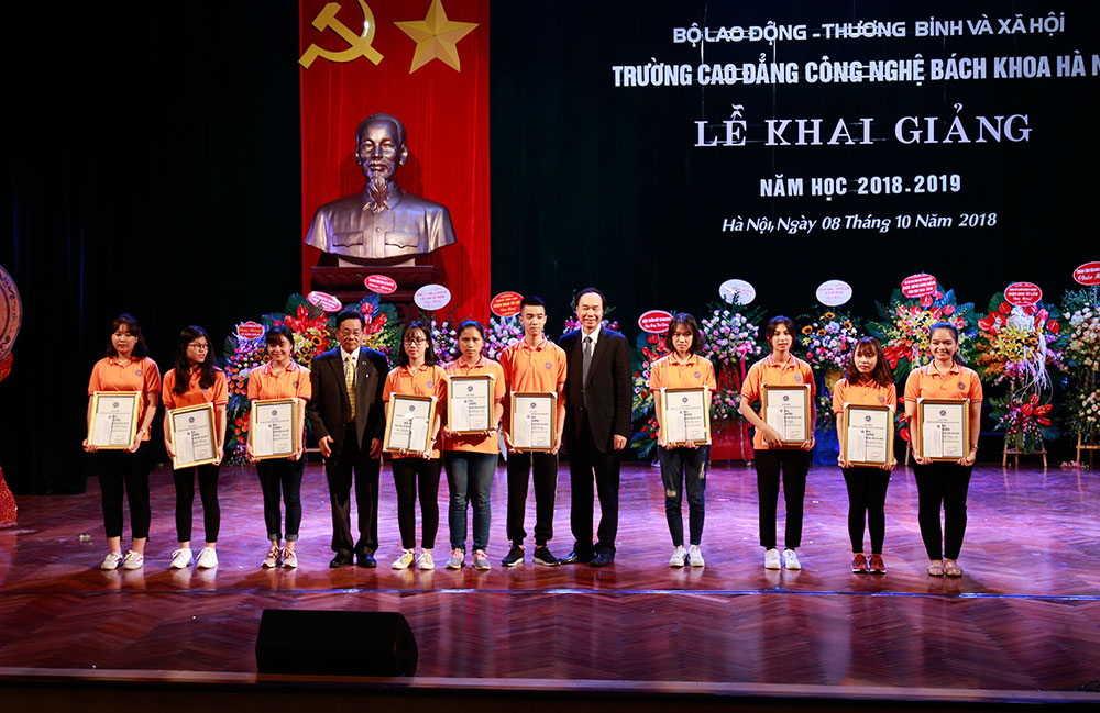 Cố vấn cao cấp nhà trường: Ông Nhâm Phong Tấn – Nguyên Phó Vụ trưởng Vụ Địa phương 1, Ban tổ chức Trung ương; PGS TS Dương Đức Lân – Nguyên Tổng Cục trưởng Tổng cục Dạy nghề (nay là Tổng cục Giáo dục nghề nghiệp, trực thuộc Bộ Lao động Thương binh và Xã hội) trao học bổng cho sinh viên HPC