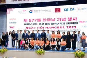 Ngày 28/10/2023, tại trường Đại học Hà Nội, sinh viên khoa Ngôn ngữ và Văn hóa Hàn Quốc HPC đã có cơ hội trải nghiệm chuỗi hoạt động sôi nổi và không gian mang đậm màu sắc văn hóa của xứ sở kim chi tại “Ngày hội chữ Hàn – Hangeul Festival” 2023.