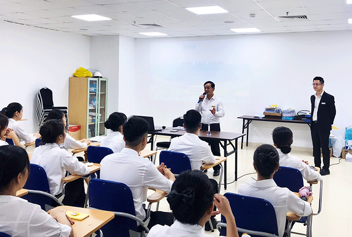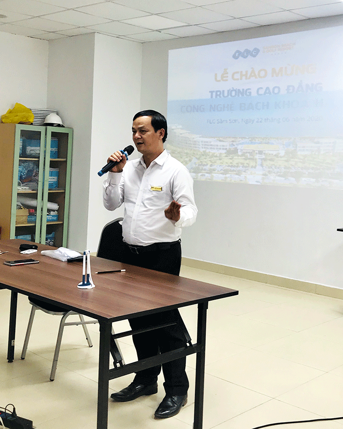 Ông Nguyễn Văn Khuyến – Giám đốc nhân sự Công ty TNHH FLC Sầm Sơn trong buổi đào tạo định hướng cho sinh viên HPC