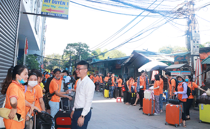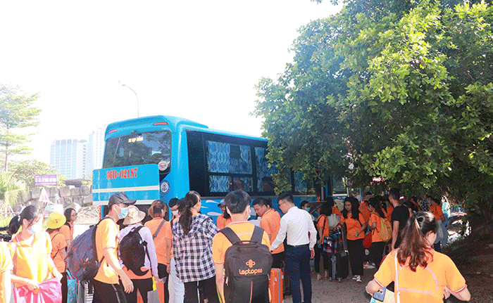 Sinh viên Khoa Du lịch – Khách sạn di chuyển đến địa điểm thực tập