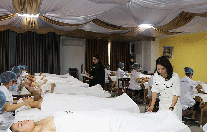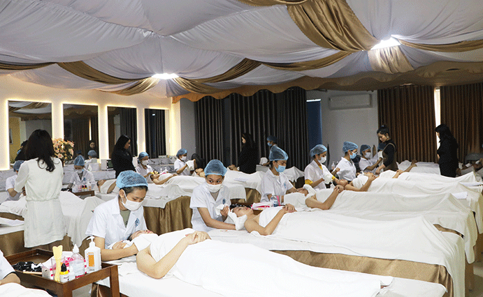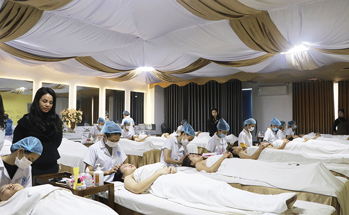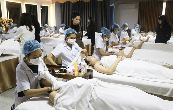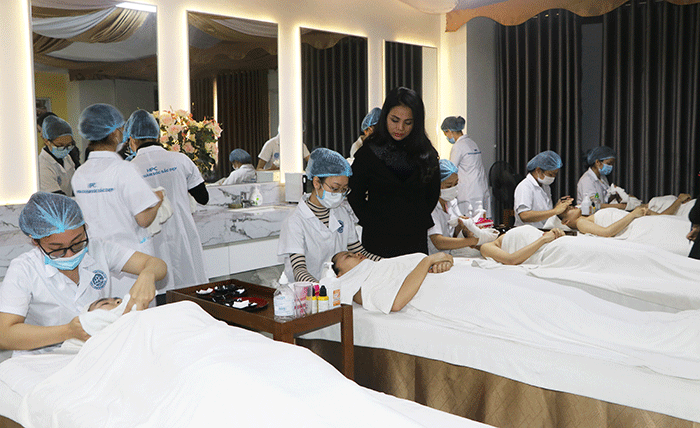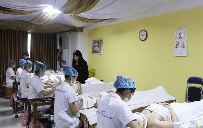 Buổi thi diễn ra nghiêm túc dưới sự giám sát của đội ngũ giảng viên Khoa Chăm sóc Sắc đẹp HPC, cùng Bà Đào Phương Liên (Giám đốc Công ty Phương Liên Beauty – Sắc đẹp hoàn mỹ) và Bà Tạ Thị Thu Hà (Giám đốc Spa tại Vĩnh Yên – Vĩnh Phúc) là các chuyên gia có nhiều năm kinh nghiệm trong lĩnh vực làm đẹp.