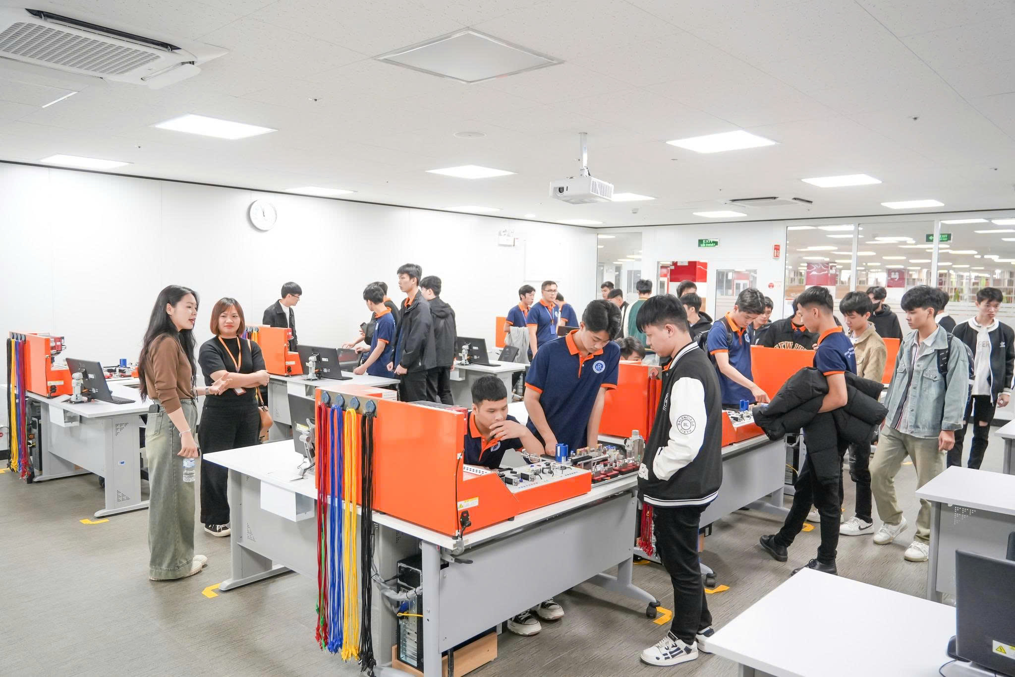 Ngay khi đặt chân đến LG Display, các bạn sinh viên đã thực sự bị chinh phục bởi quy mô và sự hiện đại của nhà máy. Tại đây, những lý thuyết về mạch điện tử, hệ thống điều khiển tự động hóa hay cảm biến vốn chỉ nằm trên bản vẽ, nay đã được hiện hữu qua: