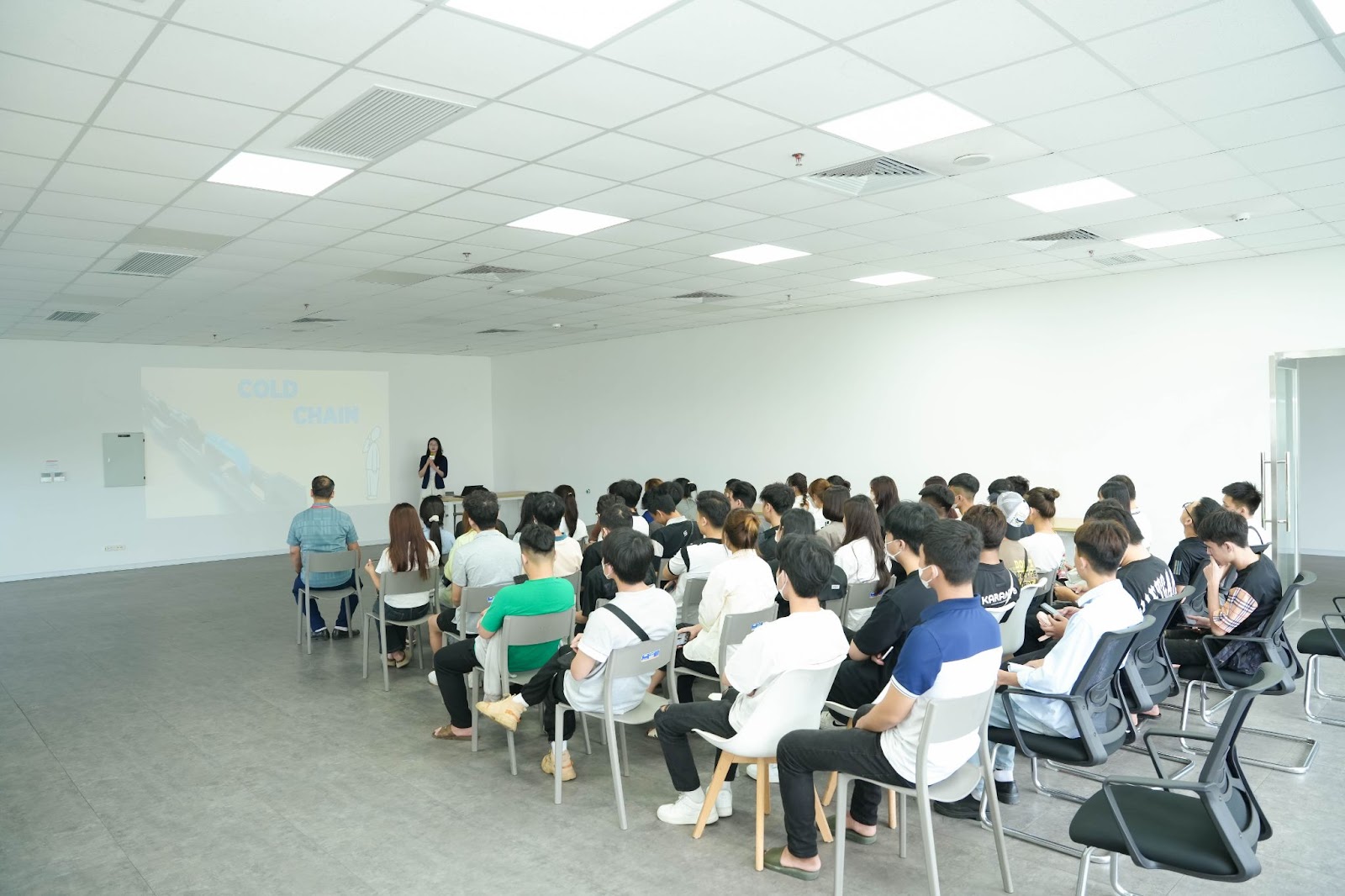 Bên cạnh đó, sinh viên kinh tế HPC còn có cơ hội tham quan tại các khu vực bên trong kho lạnh như: khu vực kho dự trữ, kho nhỏ, vận hành vận hành bằng robot cần trục, robot vận chuyển, vận hành bằng xe nâng,…