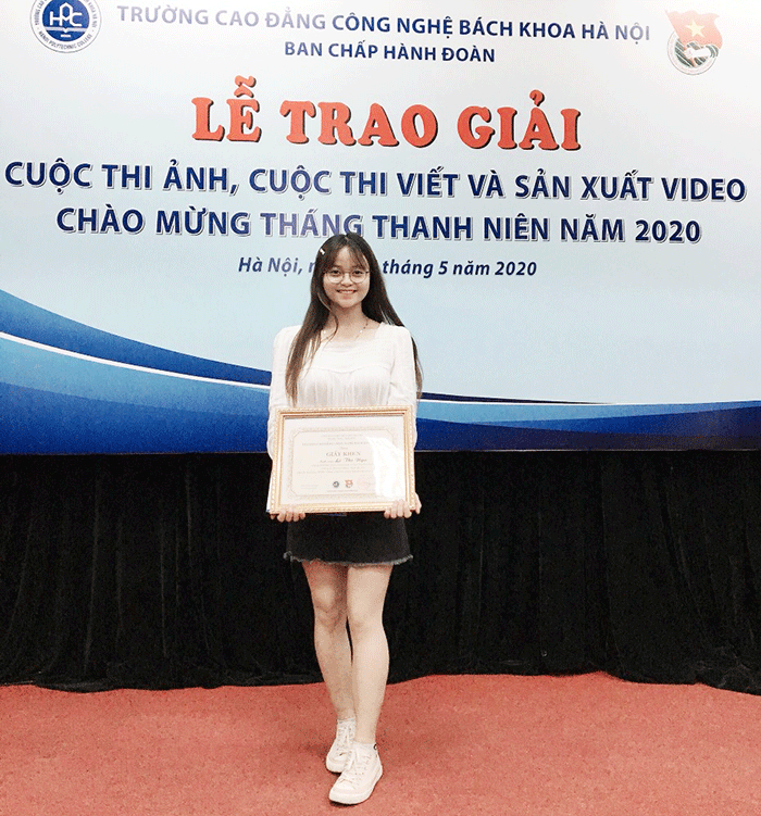 “Gia đình không mấy khá giả, bố mẹ phải làm lụng vất vả mỗi ngày để nuôi chúng em ăn học. Nhìn những giọt mồ hôi của cha mẹ, em thương vô cùng. Lúc đó, em khao khát có thể kiếm thật nhiều tiền để phụng dưỡng cha mẹ lúc tuổi xế chiều. Khi nhìn các cô chú dẫn chương trình trên sóng truyền hình em đã khao khát trở thành một nhà báo. Nhưng rồi em nhận thấy nghề báo không phù hợp với tính cách của bản thân. Trong lúc chênh vênh không biết làm thế nào để tìm ra hướng đi đúng đắn cho tương lai, em đã rất may mắn được người quen giới thiệu về Trường Cao đẳng Công nghệ Bách khoa Hà Nội. Sau khi tìm hiểu một cách kỹ lưỡng, em đã quyết định theo học ngành Tiếng Hàn tại trường”.