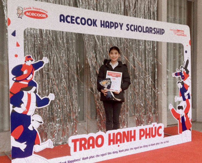 Em vô cùng biết ơn nhà trường, đặc biệt là Công ty Acecook đã dành tặng cho chúng em phần học bổng ý nghĩa này. Hơn cả giá trị vật chất, đó là nguồn động lực to lớn giúp em thêm vững tin vào hơn nữa vào lựa chọn của bản thân. Em sẽ phấn đấu học tập chăm chỉ hơn nữa để xứng đáng với sự tin yêu mà cha mẹ, thầy cô dành cho em.