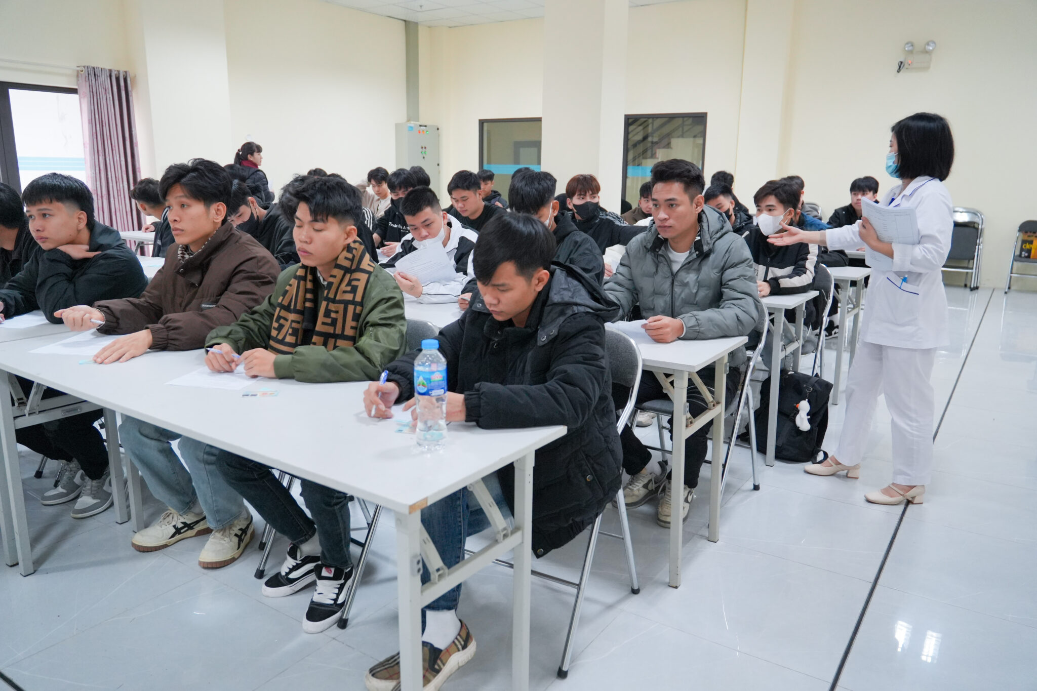 Sinh viên năm cuối K22 Khoa Công nghệ Ô tô, Trường Cao đẳng Công nghệ Bách khoa Hà Nội (HPC), vừa bước qua vòng phỏng vấn thực tập tại Honda, khám sức khỏe tổng quát và sẵn sàng thực tập tại các xưởng ô tô, xe máy của Honda Vĩnh Phúc.