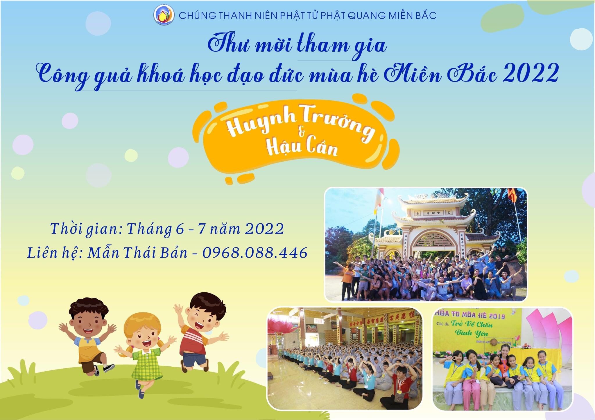 Tham gia CÔNG QUẢ KHÓA HÈ 2022 TẠI CÁC CHÙA KHU VỰC PHÍA BẮC dành cho tất cả các bạn sinh viên HPC, nhằm đáp ứng nhu cầu nguyện vọng của các sinh viên gần xa, tạo ra môi trường tu học, rèn luyện đạo đức, cùng nhau phụng sự chẳng quản gian lao hậu cần, huynh trưởng sau thời gian dài giãn cách cũng như cả học kỳ học tập căng thẳng trên giảng đường.