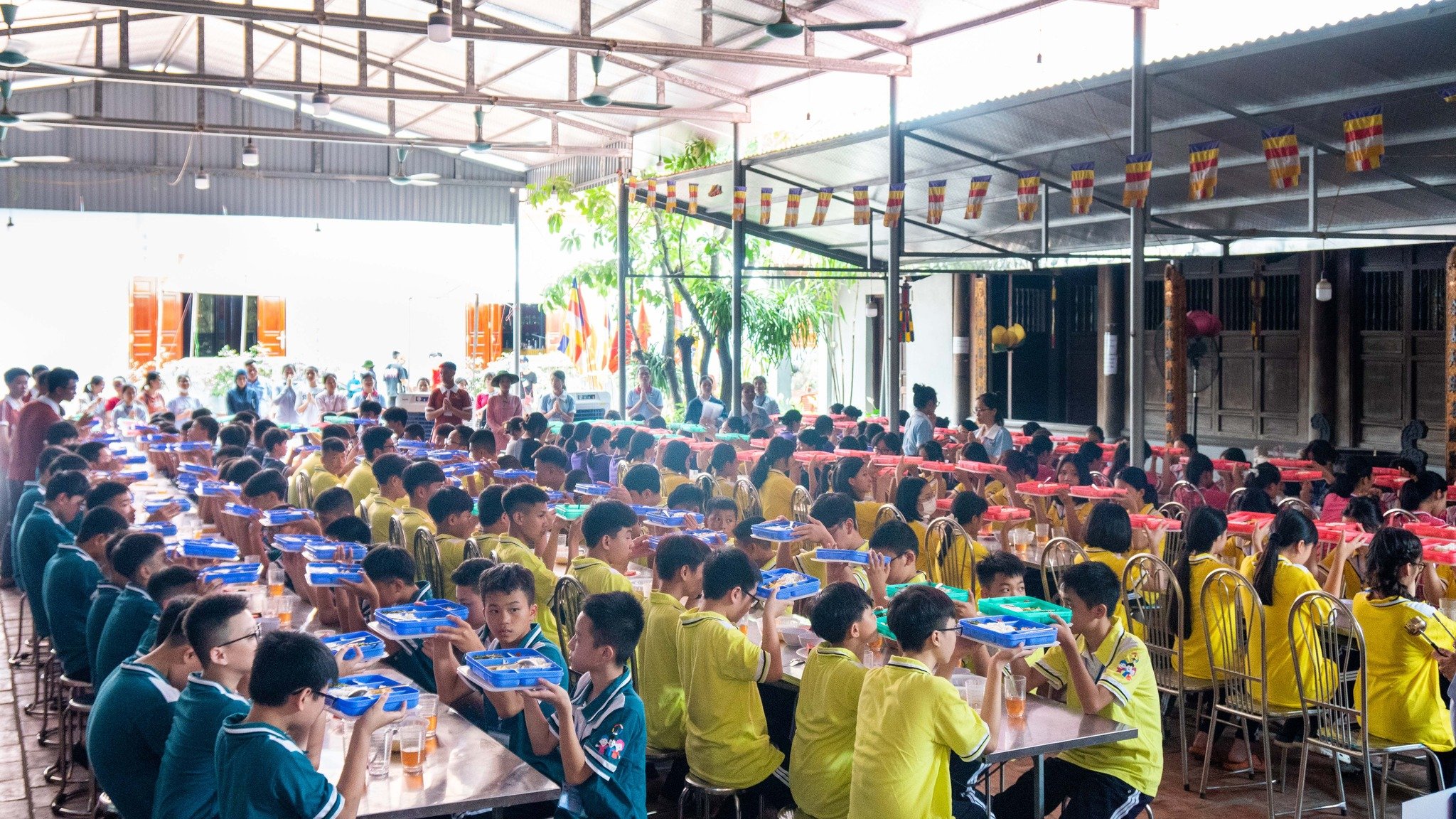 Để góp phần cho sự thành công của sự kiện đặc biệt này, không thể thiếu những đôi tay thầm lặng, sự chăm sóc đến từng bữa ăn giấc ngủ cho các em học sinh tham gia Khóa học đạo đức mùa hè.