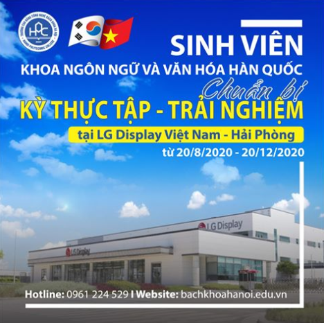 Học kỳ thực tập là một nội dung quan trọng nằm trong Kế hoạch Đào tạo Hệ Cao đẳng ngành Tiếng Hàn tại HPC. Theo đó, sinh viên K18 – Khoa Ngôn ngữ và Văn hóa Hàn Quốc sẽ bắt đầu thực tập từ ngày 20/8/2020 – 20/12/2020, tại Công ty LG Display Việt Nam Hải Phòng.