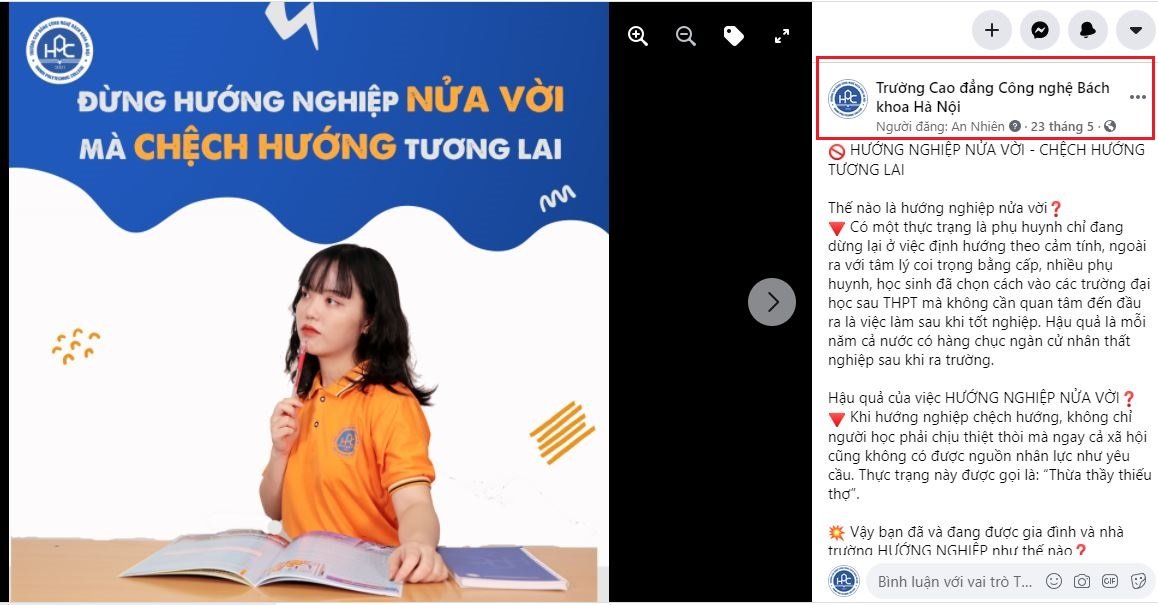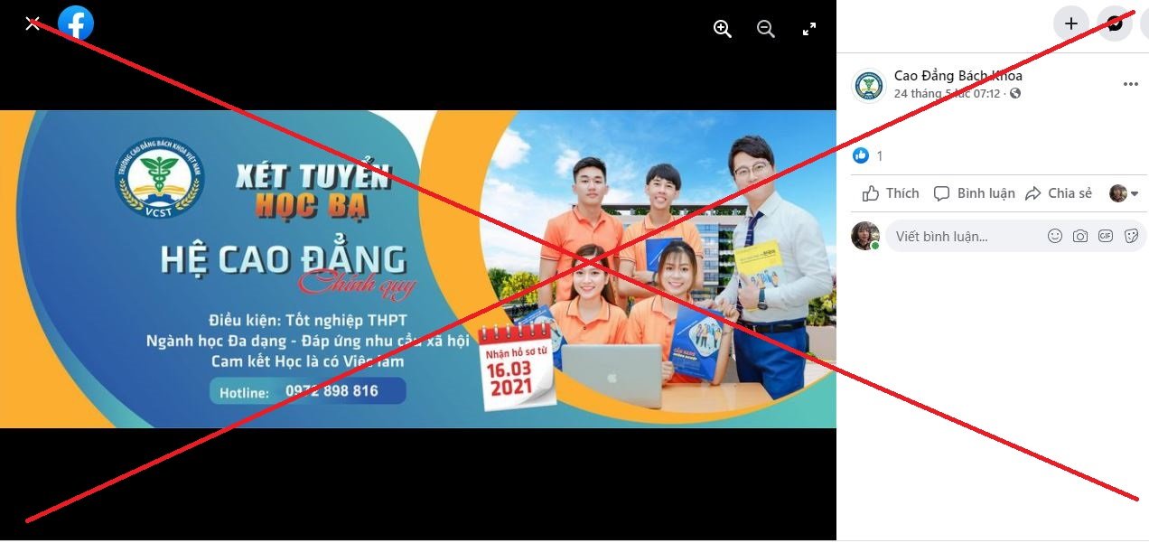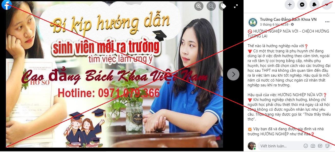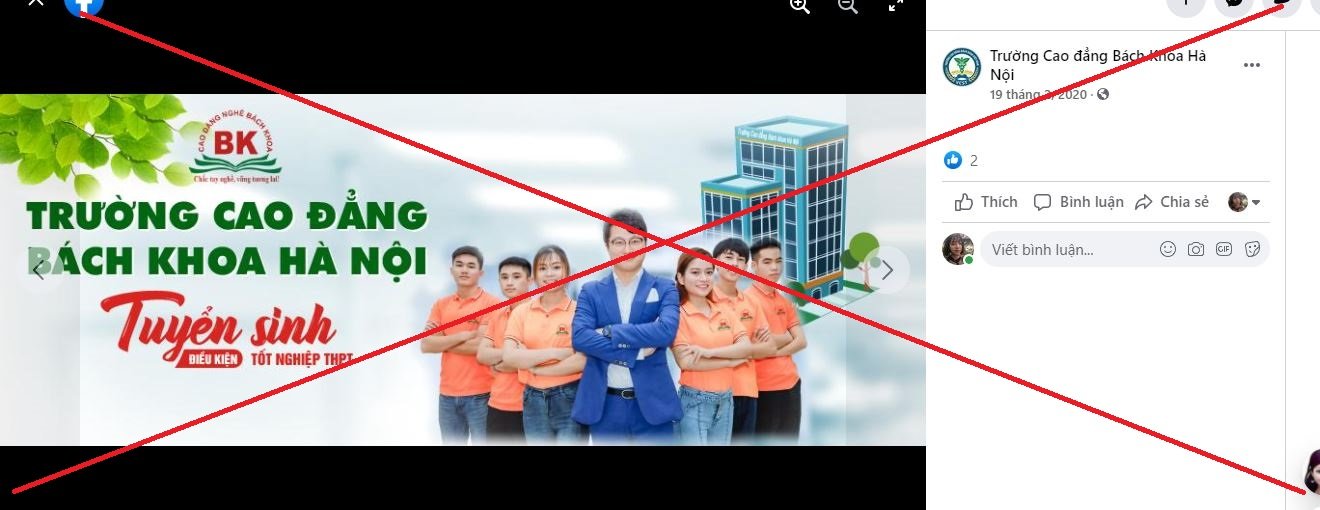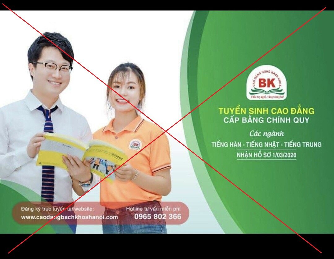 Cụ thể, các trang mạng đó đã sử dụng trái phép hình ảnh cơ sở vật chất nhà trường, logo, đội ngũ giảng viên, sinh viên, các ấn phẩm quảng cáo, truyền thông… của Cao đẳng Công nghệ Bách Khoa Hà Nội nhằm gây nhầm lẫn cho học sinh – sinh viên và phụ huynh (hình ảnh kèm theo).