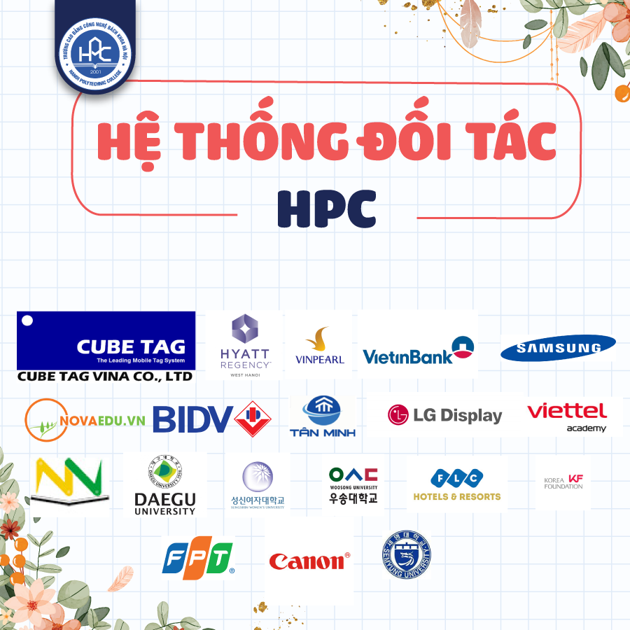 Sau 20 năm xây dựng và phát triển, Trường Cao đẳng Công nghệ Bách khoa Hà Nội (HPC) đã trở thành một trong những đơn vị đào tạo chất lượng, uy tín, hàng đầu tại khu vực miền Bắc. Cùng với sự phát triển đó HPC luôn trân trọng sự đồng hành của hệ thống đối tác chiến lược của nhà trường.