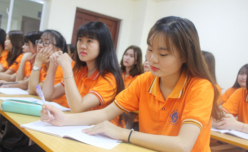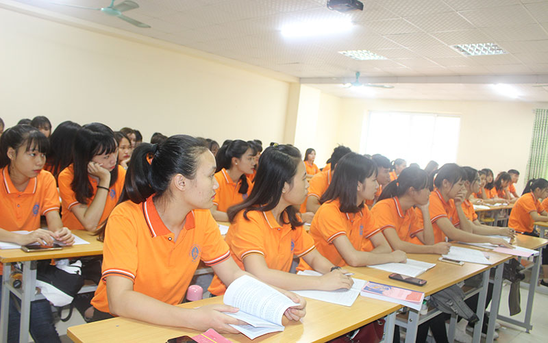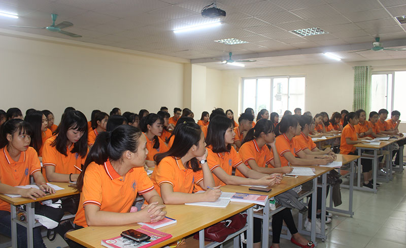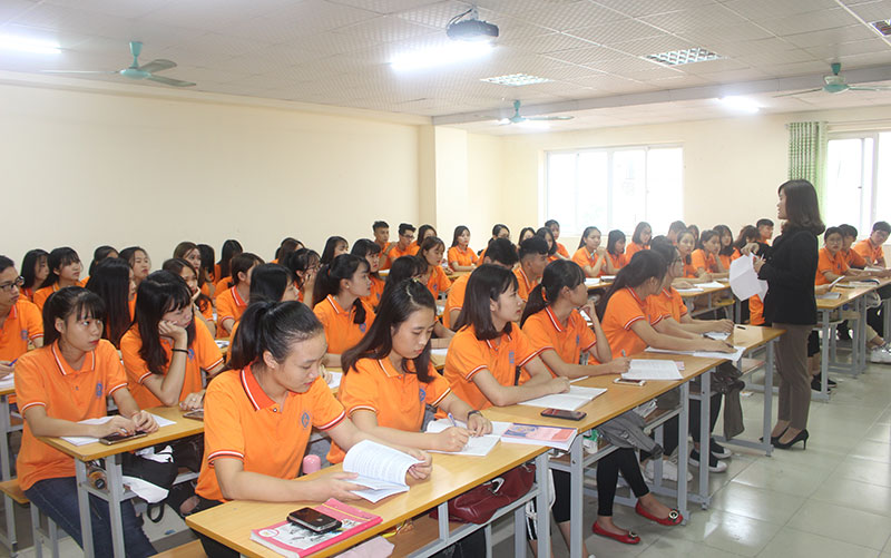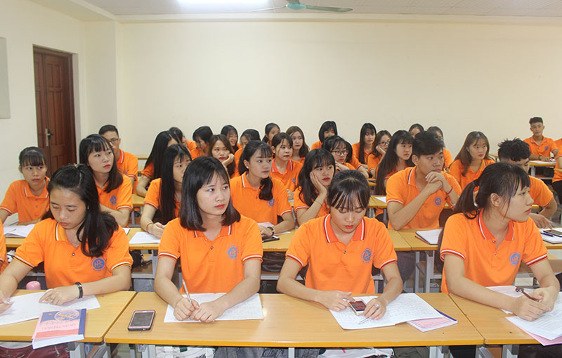 Chùm ảnh Sinh viên Lớp K18 QTKD 3.01 Trường Cao đẳng Công nghệ Bách khoa Hà Nội trong một buổi học: