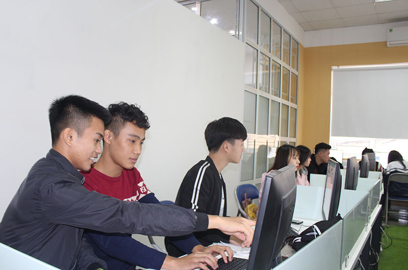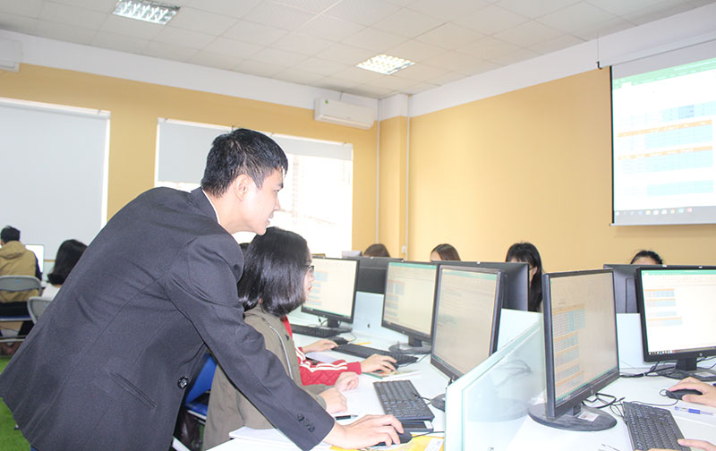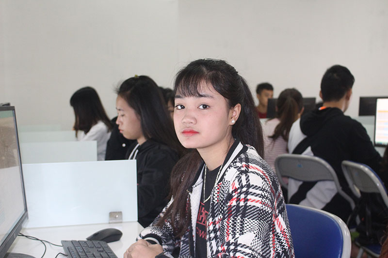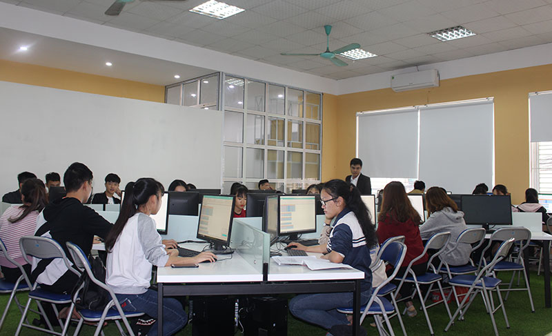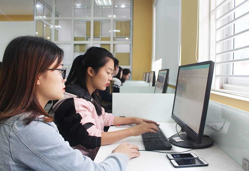 Sinh viên Lớp K18 QTKD 3.01 trong giờ Tin học: