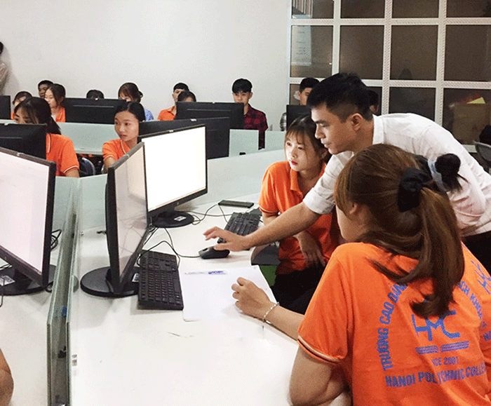 Cùng ghé thăm một tiết thực hành tin học của sinh viên lớp K20 – QTKD.02, Trường Cao đẳng Công nghệ Bách khoa Hà Nội: