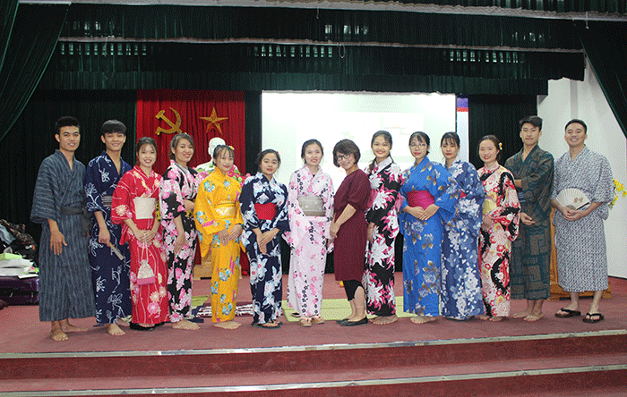 Sinh viên Khoa Ngôn ngữ và Văn hóa Nhật Bản trải nghiệm với trang phục Yukata Nhật Bản