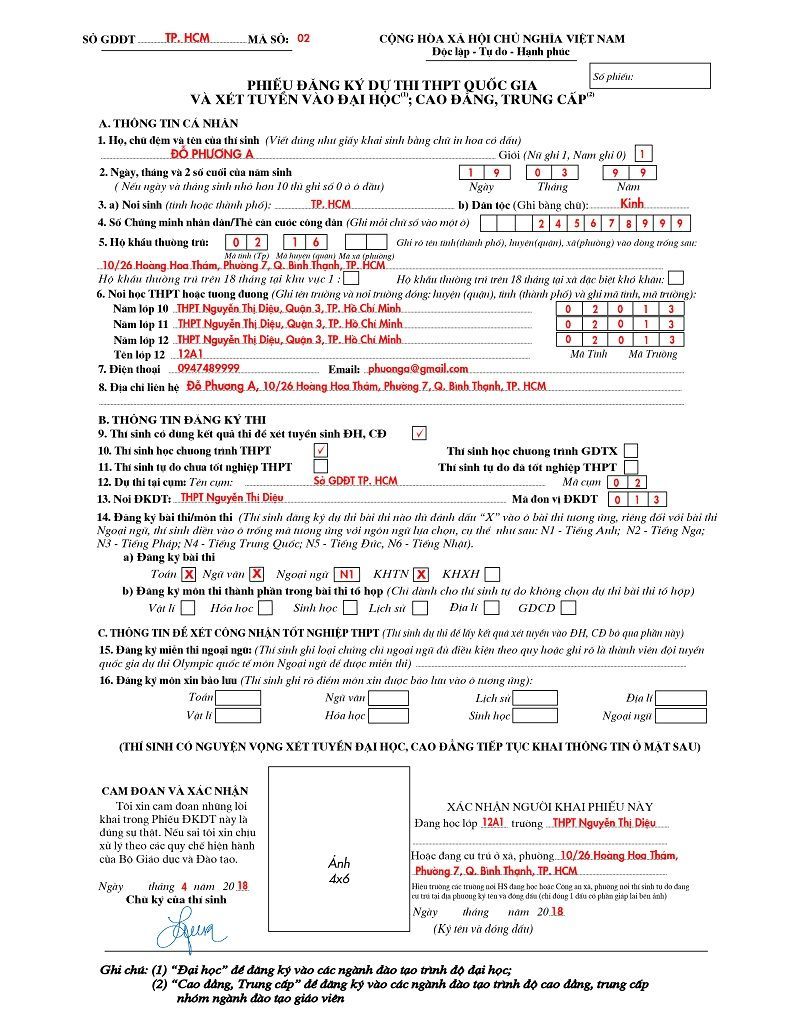 Hướng dẫn điền phiếu ĐKDT THPT Quốc gia và xét tuyển ĐH 2018