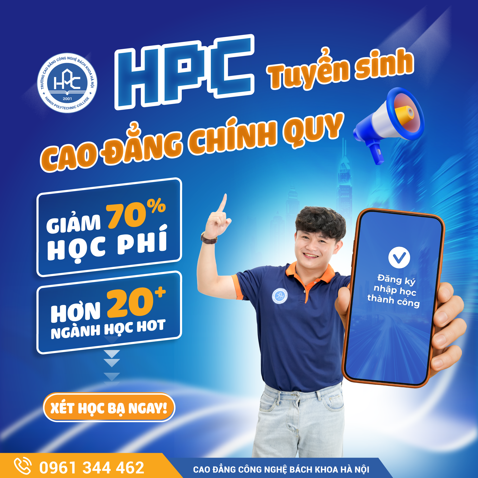Trong bối cảnh thị trường lao động đòi hỏi nguồn nhân lực có kỹ năng thực hành thành thạo và khả năng thích ứng nhanh, lựa chọn học cao đẳng chất lượng cao đang trở thành xu hướng thực tế của nhiều bạn trẻ thế hệ Gen Z. Năm 2025, Trường Cao đẳng Công nghệ Bách khoa Hà Nội (HPC) chính thức triển khai HPC Tuyển sinh 2025, mở rộng cơ hội xét tuyển học bạ đối với bốn khối ngành trọng điểm, tạo điều kiện thuận lợi để học sinh lớp 12 chủ động lựa chọn hướng đi nghề nghiệp phù hợp, tiết kiệm chi phí và sớm có việc làm ổn định.