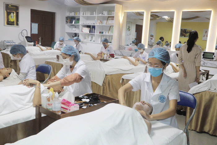 Dưới đây là một số hình ảnh sinh viên K19 – Khoa Chăm sóc Sắc đẹp trong một buổi học thực hành:
