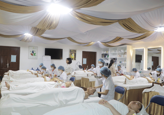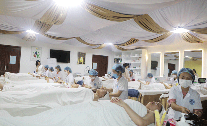 “Với mục tiêu 100% sinh viên sau khi tốt nghiệp có việc làm ổn định với mức thu nhập cao, Khoa thực hiện chương trình đào tạo song song giữa lý thuyết và thực hành. Do đó, sau mỗi chuyên đề lý thuyết các em sẽ được thực hành trực tiếp trên mẫu. Điều này không chỉ giúp các em áp dụng kiến thức đã học vào thực tế một cách nhanh chóng mà còn tạo nền tảng phát triển vững chắc cho các em theo từng cấp độ từ cơ bản tới chuyên nghiệp” – Cô Nguyễn Kim Thúy, chuyên gia giảng viên Khoa Chăm sóc Sắc đẹp chia sẻ.