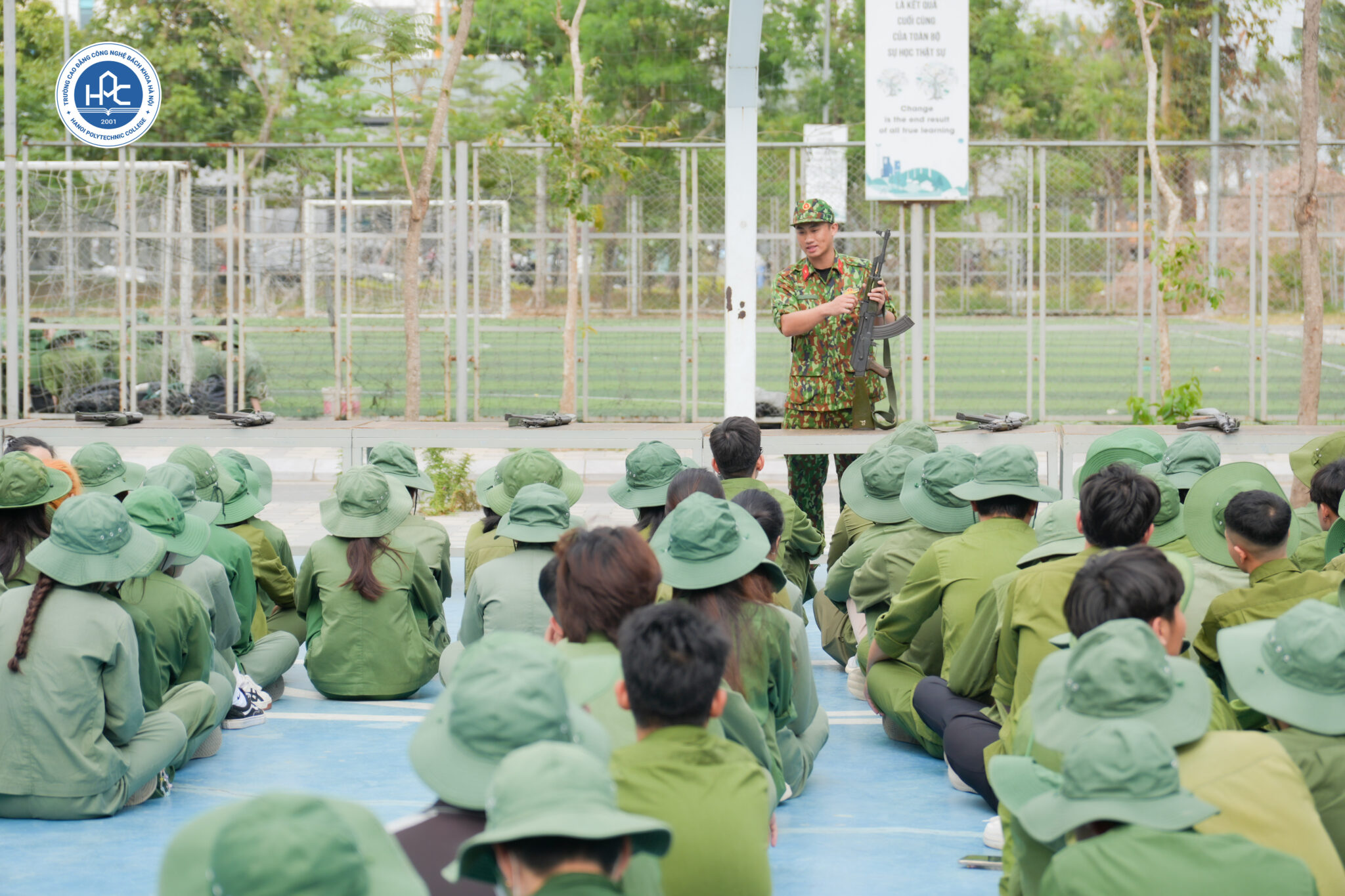 Tình yêu Tổ quốc được các thầy đến từ Trung tâm GDQP&AN – Trường Đại học Hải Phòng giảng dạy và truyền cảm hứng cho gần 3000 sinh viên HPC.