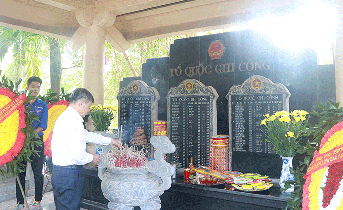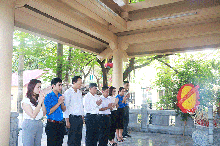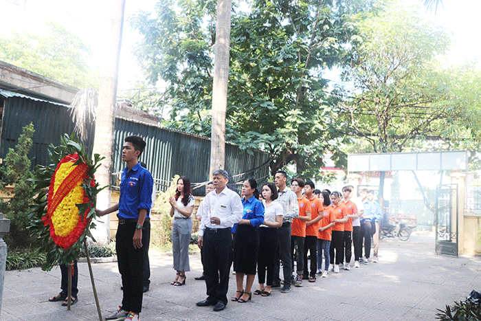 Đại diện Ban Lãnh đạo nhà trường dự buổi lễ dâng hương có Thầy Ngô Văn Sự – Hiệu trưởng nhà trường; Thầy Lê Văn Dũng – Phó Hiệu trưởng nhà trường. Đại diện Ban Chấp hành Đoàn có đồng chí Nguyễn Thị Huyền – Bí thư Đoàn trường, cùng thầy cô đại diện các phòng ban và đoàn viên HPC.
