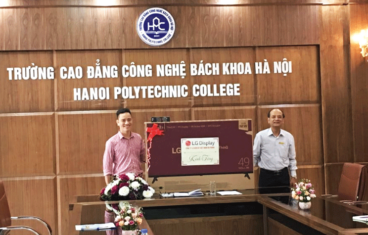 Thầy Đặng Văn Tâng nhấn mạnh: “Món quà ý nghĩa mà Công ty LG Display Việt Nam Hải Phòng dành tặng sẽ góp phần giúp nhà trường thực hiện tốt hơn công tác tuyên truyền, giáo dục, giúp các em sinh viên nâng tầm tri thức. Trường Cao đẳng Công nghệ Bách khoa Hà Nội rất trân quý món quà từ quý Công ty và sẽ sử dụng thật hiệu quả để mang đến môi trường học tập tốt nhất cho các em sinh viên.”