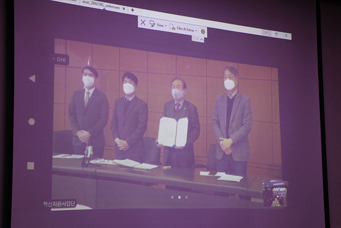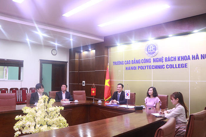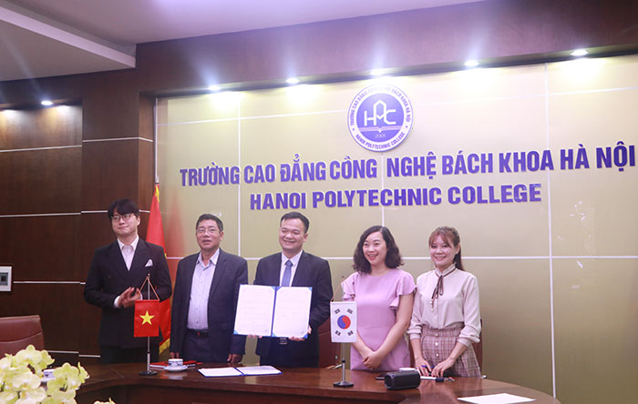 Đại diện Lãnh đạo tham dự Lễ ký kết, về phía Trường Cao đẳng Công nghệ Bách khoa Hà Nội có Thầy Bùi Quang Thịnh – Chủ tịch Hội đồng giáo dục nhà trường. Về phía, Trường Cao đẳng Woosong Hàn Quốc có Tiến sĩ Sang Jik Jung – Chủ tịch Hội đồng.