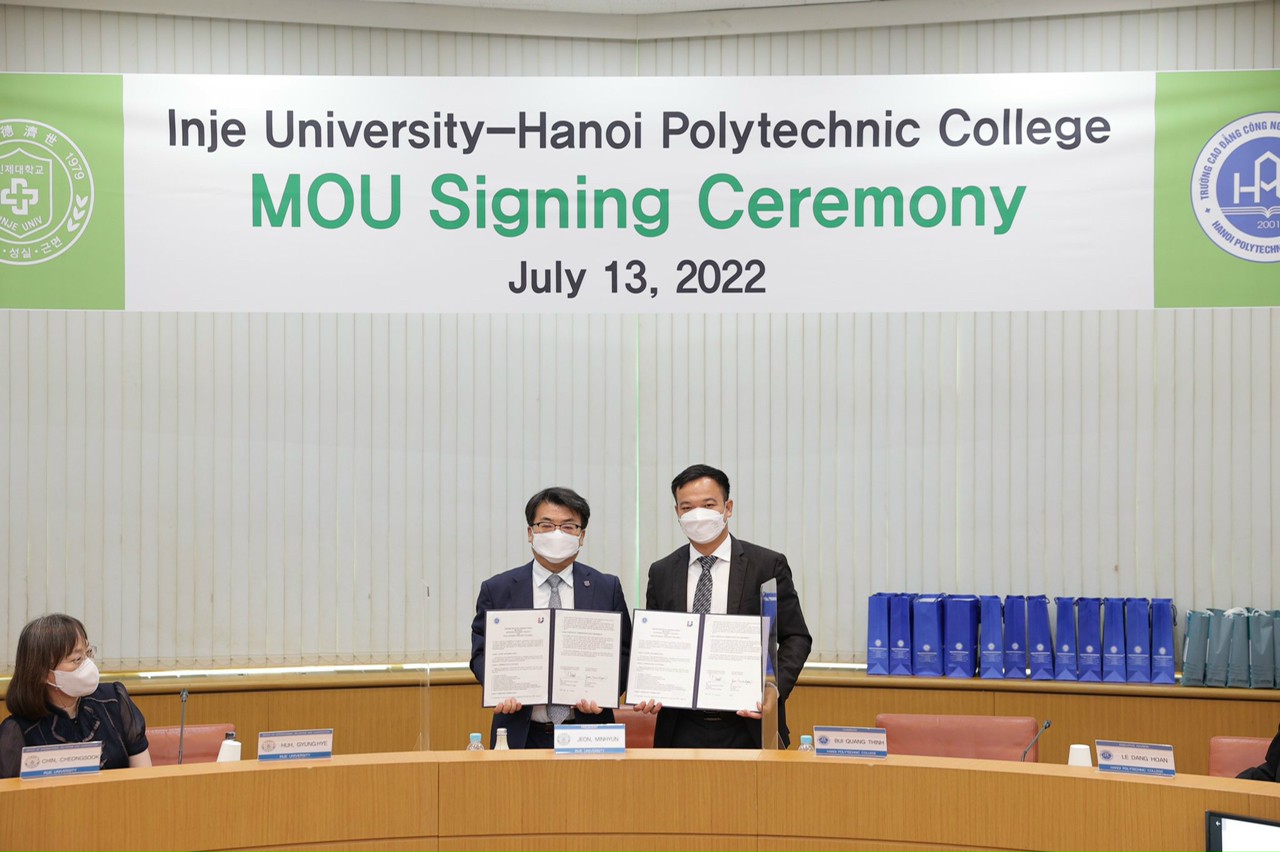 Cũng trong chuyến thăm và làm việc tại ngôi trường số 1 về ngành Dược ở Hàn Quốc này, Trường Cao đẳng Công nghệ Bách khoa Hà Nội đã ký kết hợp tác đào tạo với Đại học Inje.