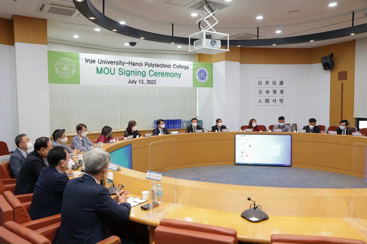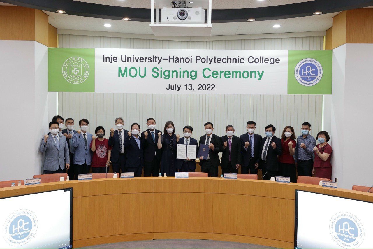 Sáng ngày 13/7/2022, đoàn công tác Trường Cao đẳng Công nghệ Bách khoa Hà Nội và các chuyên gia đầu ngành về Phục hồi chức năng tại Việt Nam đã tới thăm và làm việc tại Đại học Inje Hàn Quốc.