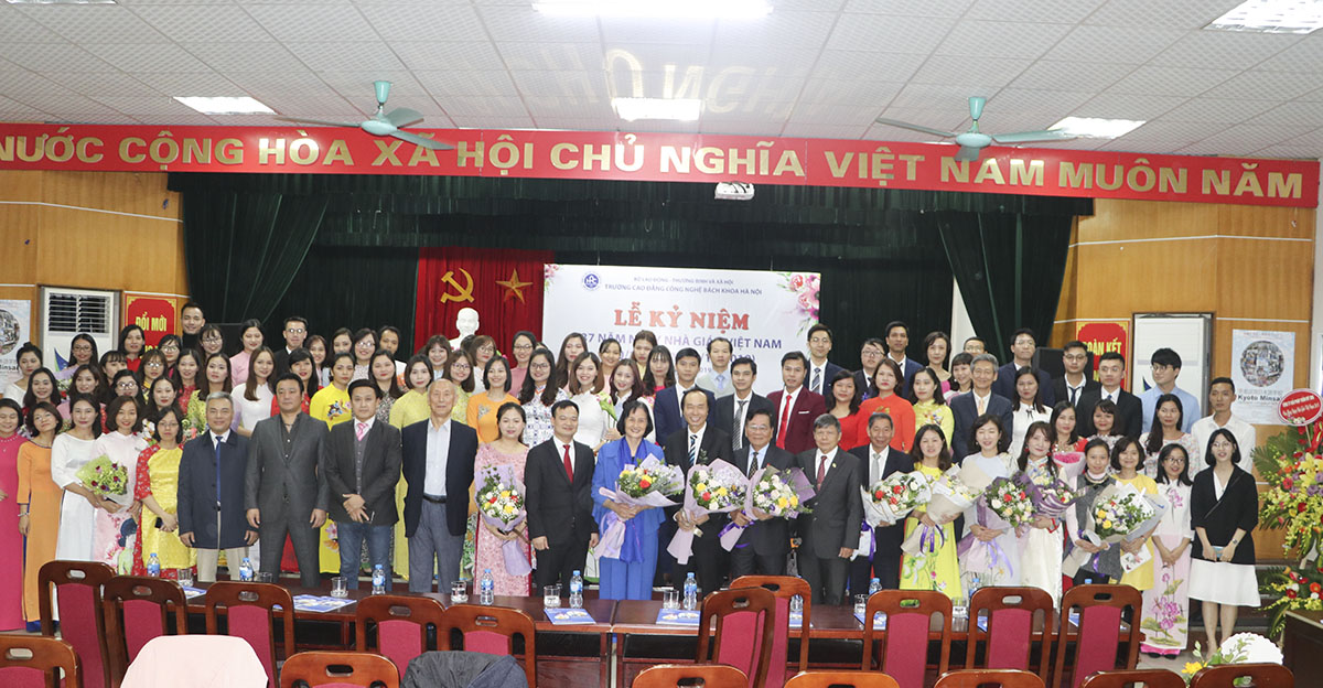 Lễ kỷ niệm vinh dự được đón tiếp Bà Nguyễn Thị Hằng – Nguyên Uỷ viên Trung ương Đảng, Nguyên Bộ trưởng Bộ Lao động – Thương binh và xã hội, Chủ tịch Hiệp hội Giáo dục nghề nghiệp và Nghề công tác xã hội Việt Nam; PGS – TS Dương Đức Lân – Nguyên Tổng Cục trưởng Tổng cục Dạy nghề (nay là Tổng cục giáo dục nghề nghiệp, thuộc Bộ Lao động Thương binh và Xã hội), cố vấn cấp cao nhà trường; Ông Nhâm Phong Tấn – Nguyên Phó Vụ trưởng Vụ địa phương 1, Ban tổ chức Trung ương, Cố vấn cao cấp nhà trường; TS Lê Đăng Hoan – Phó Chủ tịch hội đào tạo tiếng Hàn tại Việt Nam, Ủy viên Ban chấp hành Hội nghiên cứu Hàn Quốc tại Việt Nam, Cố vấn cao cấp nhà trường; đại diện các công ty Cube Tag, Công ty Yu-min, Công ty In Born; cùng Ban Lãnh đạo, đội ngũ cán bộ giảng viên và đại diện các em sinh viên Trường Cao đẳng Công nghệ Bách khoa Hà Nội.