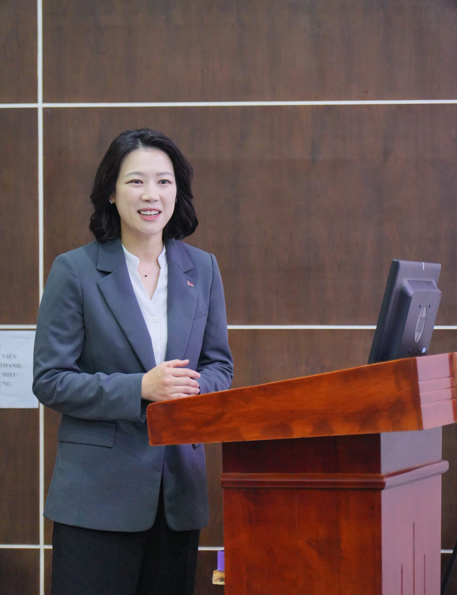 Bà Lee Hana – Viện trưởng Viện Hợp tác quốc tế phát biểu tại buổi lễ ký kết MOU với HPC