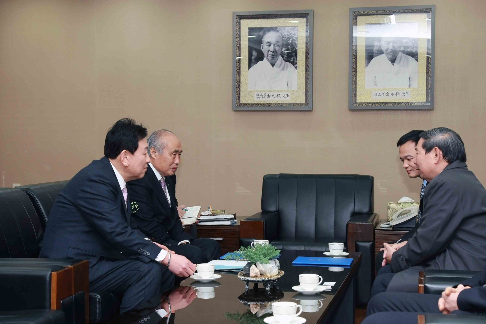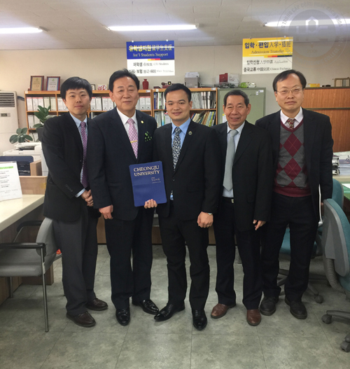 Thầy Bùi Quang Thịnh, Chủ tịch Hội đồng giáo dục của Trường chụp ảnh lưu niệm với Ban giám hiệu trường Đại học Cheongju