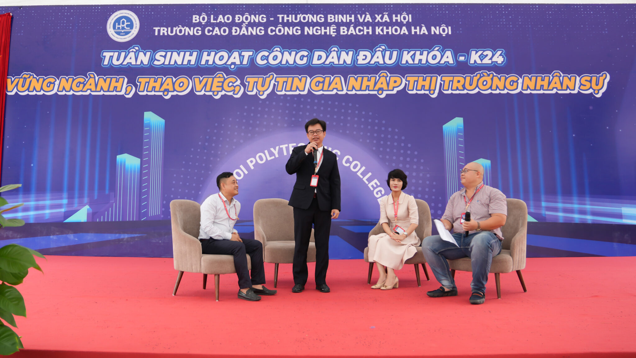 Bên cạnh đó, trong tuần sinh hoạt công dân đầu khóa còn có talkshow: “Sinh viên HPC khóa 24: Hòa nhập nhanh – Lành nghiệp vụ”, với nội dung hoàn toàn mới, cách tiếp cận gần gũi và vui vẻ. Các tân sinh viên đã được nghe những “chuyện chưa từng kể” thời đi học và được cung cấp bản đồ cho tương lai đến từ các thầy, cô: