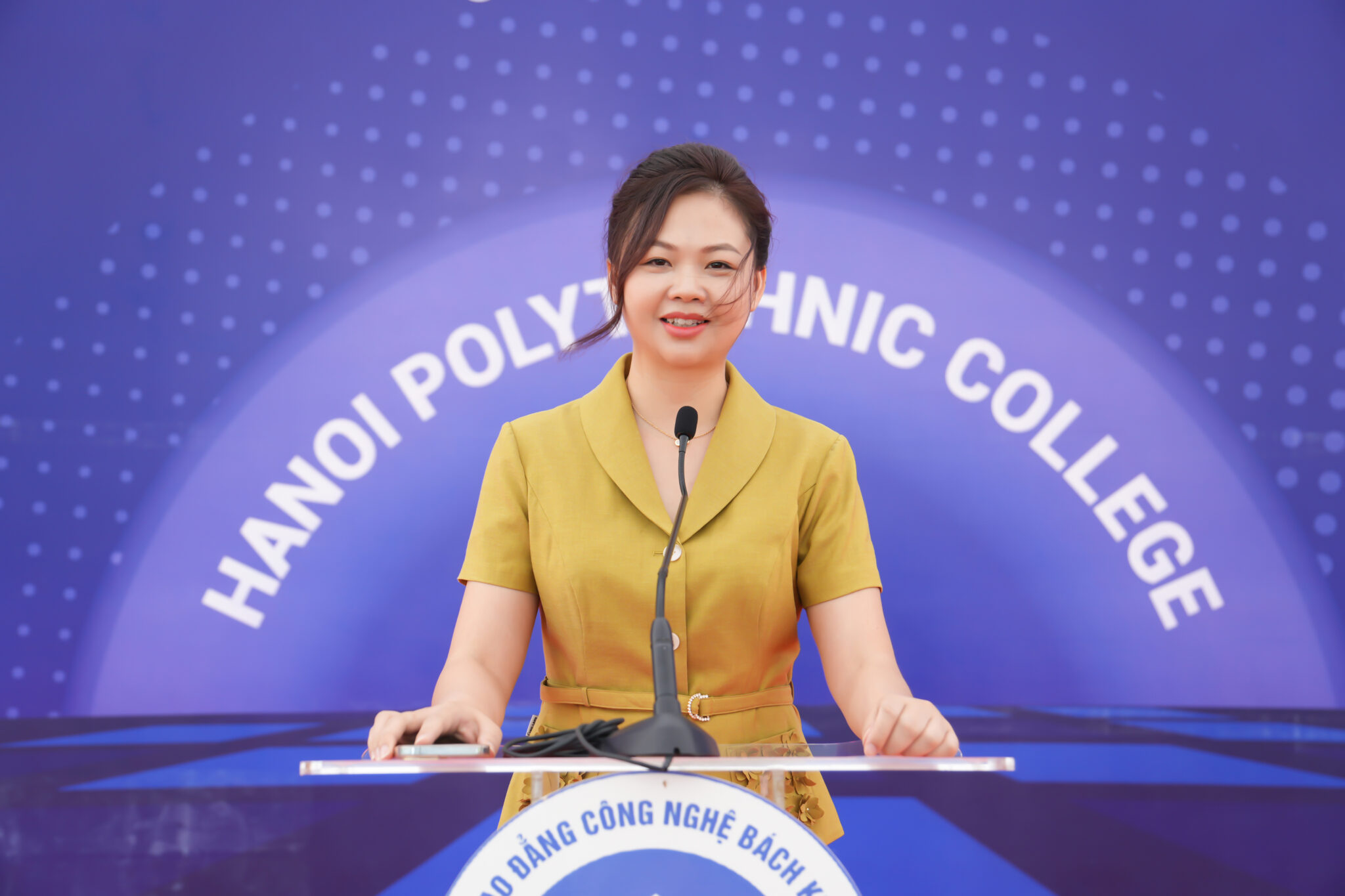 Trong sự kiện tuần sinh hoạt công dân đầu khóa, cô Lê Thị Quỳnh Anh – Chủ tịch Hội đồng Nhà trường – đã có bài phát biểu ấn tượng, cùng những lời chúc ý nghĩa dành riêng cho tân sinh viên K24.