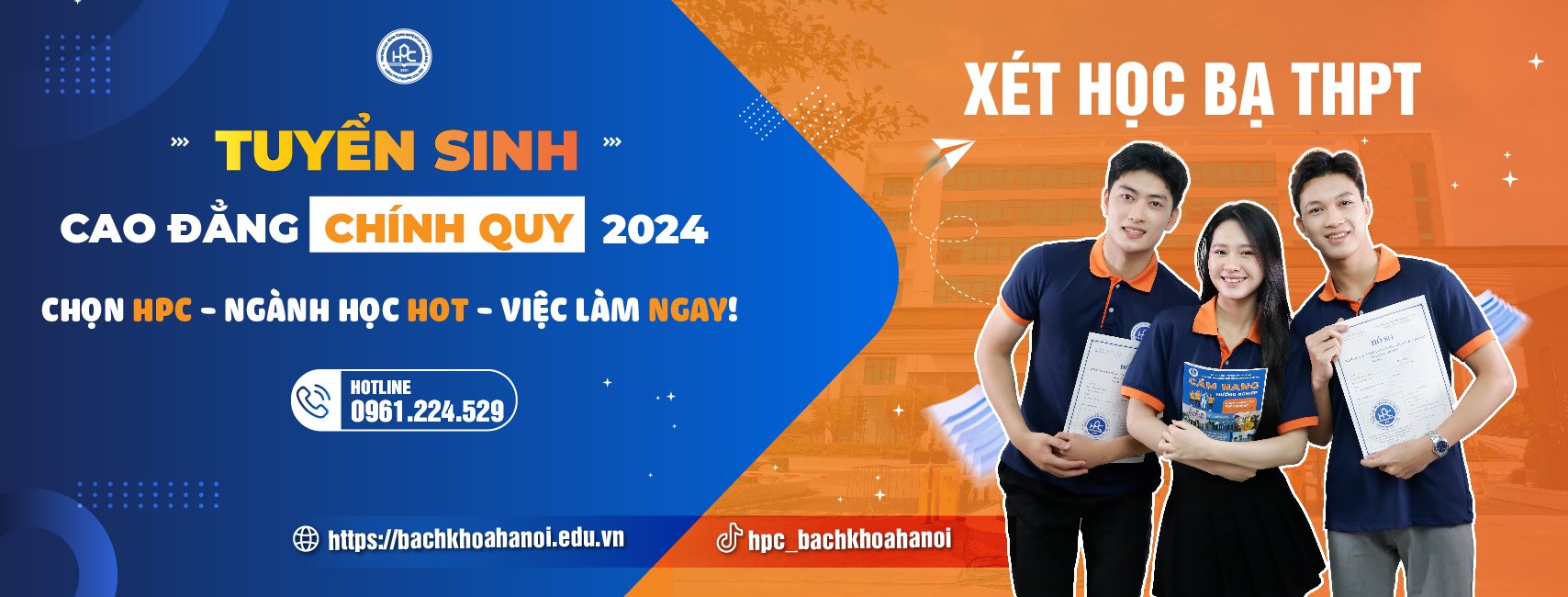Trường Cao đẳng Công nghệ Bách khoa Hà Nội (HPC) có hơn 24 năm hoạt động trong hệ thống Giáo dục nghề nghiệp Quốc gia. Năm học 2024 – 2025 Nhà trường chính thức mở chỉ tiêu tuyển sinh cao đẳng chính quy.