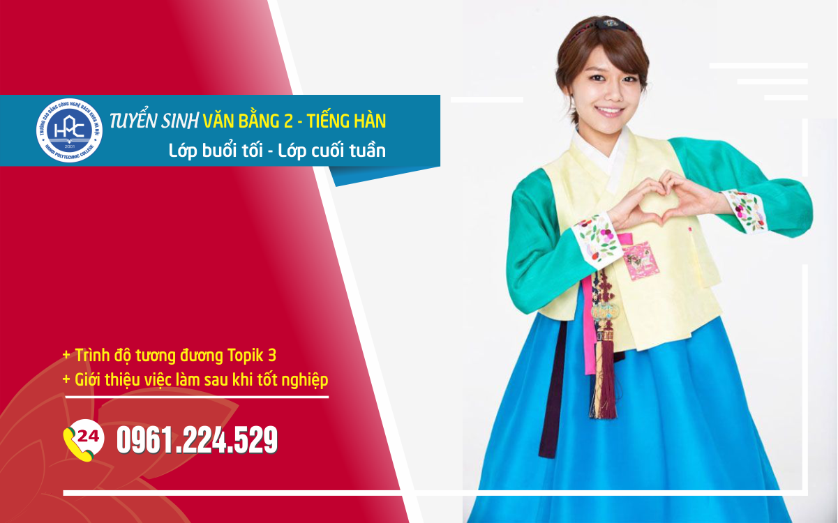 Để mở rộng cơ hội học tập và lựa chọn việc làm cho các bạn đã tốt nghiệp, sinh viên đang học tập tại các trường Đại học, Cao đẳng, Trung cấp, Trường Cao đẳng Công nghệ Bách khoa Hà Nội tổ chức TUYỂN SINH CÁC LỚP VĂN BẰNG 2 ngành TIẾNG HÀN.